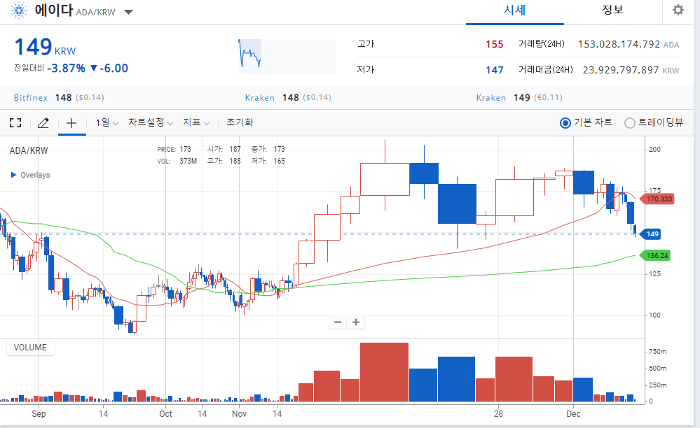 현재 에이다 코인은 코인베이스에 올해말이나, 내년 2021년에는 상장될 것으로 예측이 되고 있습니다. 시총 10위 권안에 있는 코인들 중에서 미국 최대 코인거래소인 코인베이스에 등록되지 않은 코인은 에이다 코인 뿐입니다. 따라서 에이다 코인이 코인베이스에 등재될 것을 기대하며 버티시거나, 지금 가격이 150원정도로 내려왔을 때 추가매수를 하시는 분도 있습니다.