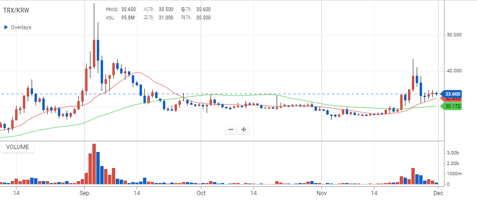 트론 코인의 경우 현재 여전히 거래대금을 봤을 때 초기라고 보여지는데요. 즉 투매성 물량이 아직까지는 들어 오지 않은 상황이기 때문에 추가상승의 관점을 두고 분석을 해봤을 때 현재의 트론은 지속적 상승의 가능성이 있다고 평가가 됩니다. 트론 코인 전망은 현재 추가 상승의 가능성이 있으며, 비트코인의 추세를 이어받아 지금은 매수를 해볼만한 시점이라고 보여지고 있습니다.